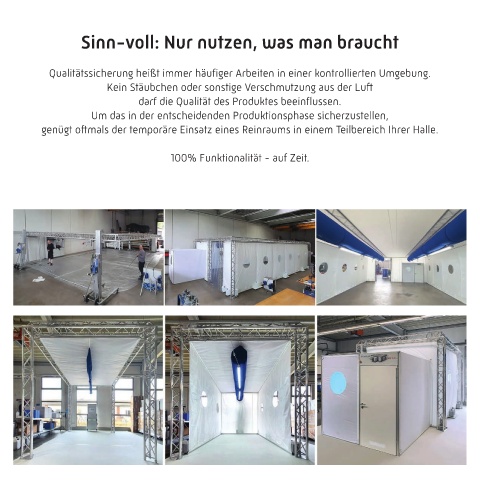 genügt oftmals der temporäre Einsatz eines Reinraums in einem Teilbereich Ihrer Halle.